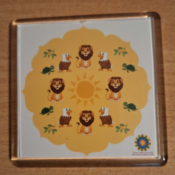 Külmkapimagnetil kujutatud mandala tõstab enesekindlust ja annab sisemist jõudu. Kollane põhitoon mandalas stimuleerib päikesepõimikut ja võib seeläbi soodustada kaalu langetamist.